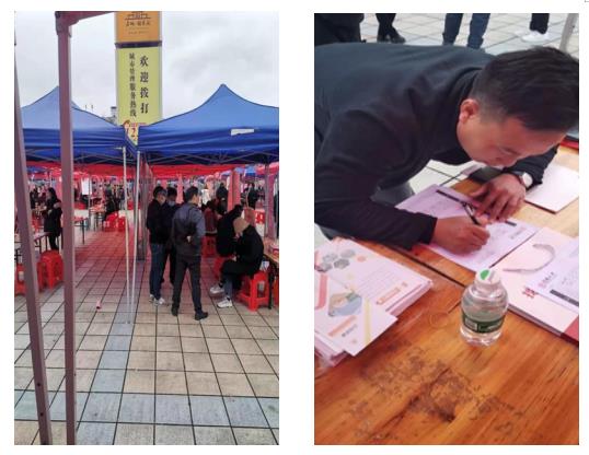 招聘會現(xiàn)場人頭攢動,氣氛熱烈。各招聘單位為前來求職農(nóng)民工熱心介紹招聘信息、解答問題。